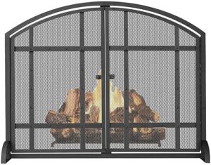スクリーン ファイアーガード ストーブ ファイアースクリーン 暖炉スクリーン 装飾的な錬鉄製の暖炉スクリーン、大きな暖炉パネル スタンディングゲート 金属メッシュカバー付き、スパークガードと薪ストーブ用暖炉