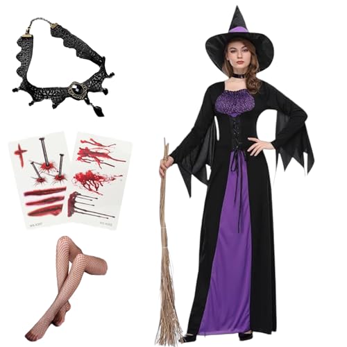 魔女コスプレのためのハロウィンネックレス2種類を含む6点セット。大人の女性向けの仮装アイテムで、魅力的なスタイルを演出します。サイズはSで、特別な夜にピッタリのアイテムです。