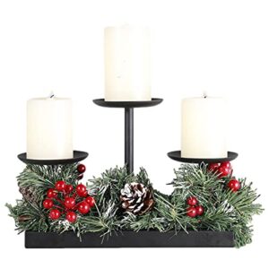 クリスマス キャンドル スティック |松ぼっくりとレッドベリーのクリスマステーブルセンターピース – フェスティバルパーティー用品 ローソク足 季節のデコレーション (Color : 2 Pcs 3 Heads)
