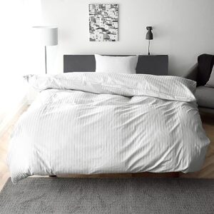 日本製 布団カバー セット シングル 3点セット 防ダニ 綿100% サテンストライプ 高密度生地315本 掛け布団カバー ボックスシーツ 枕カバー 北欧 おしゃれ エトワール (シングル, スノーホワイト)