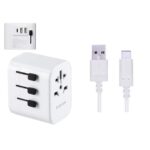 エレコムのType-Cケーブルセットは、海外対応の変換プラグ(A/BF/O/Cタイプ)とUSB-Cケーブル(1.0m)を含み、最大15Wの出力をサポート。急速充電(3A)対応で、デバイスを効率的に充電可能。
