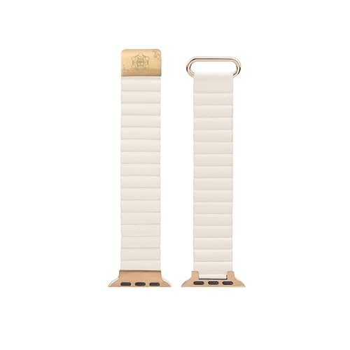 おジャ魔女どれみの彫刻入りアップルウォッチバンド。マグネット式で着脱簡単、調整可能。耐衝撃の保護カバーはSeries 9/8/7/6/SE/5/4対応、サイズ38mm/40mm/41mm。アイボリー デザインb。