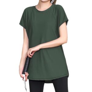 [DAYCLOSET] ヨガウェアトップス ヨガtシャツ レディース 半袖 体型カバー 速乾 薄手 丈長め 伸縮性 ゆったり yoga125 (XL, モスグリーン)