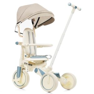 子供用三輪車 5in1は、ベビーカーとバイクが合体した超軽量乗用玩具です。押し棒付きでハンドル調整可能、誕生日プレゼントにも最適。組み立ても簡単で、グレーとホワイトの2色展開。