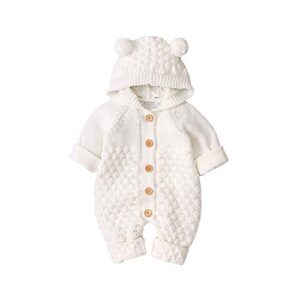 [Mornyray] ベビー服 ロンパース カバーオール ニット 長袖 帽子つき 新生児服 赤ちゃん服 前開き 春 秋 冬 コットン 女の子 男の子 着替え便利 室内着 外出着 出産祝い 0-24ヶ月