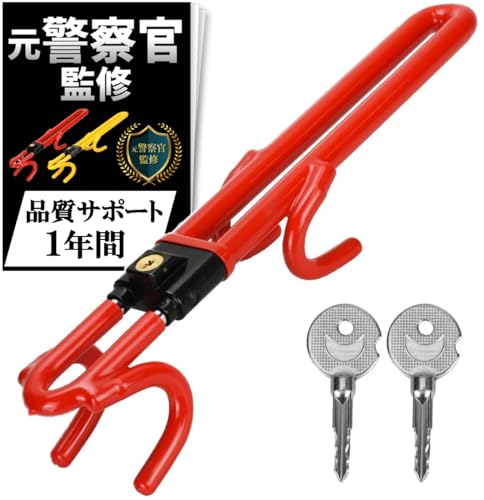 ハンドルロックは元警察官の防犯プロが監修した盗難防止アイテム。リレーアタック対応で、簡単に取り付け可能。スペアキー付きで安心な設計。カラーはレッド。