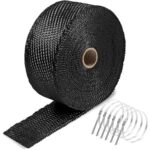 DERCHIAの耐熱布マフラーバンテージは、グラスファイバー製で高耐熱性。エキゾーストテープとしてバイクや自動車、薪ストーブの熱対策に最適。サイズは2.5cm×5m、結束バンド付属。カラーはブラック。