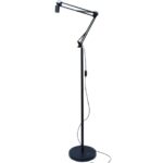 HaruDesignのスイングアーム式フロアスタンドは、E26ソケット対応でスイッチ付き。シンプルでスタイリッシュなデザインが特徴で、様々なインテリアにマッチします。