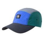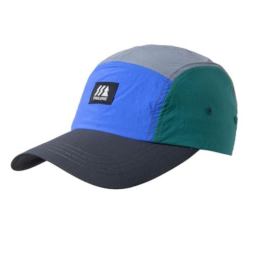 キッズキャップ(ブルー&グリーン、Mサイズ)は撥水・速乾性に優れ、UVカット機能付き。春夏向けで、男女兼用。軽量で涼しく、日除けやスポーツ、アウトドアに最適。親子お揃いコーデにもおすすめ。