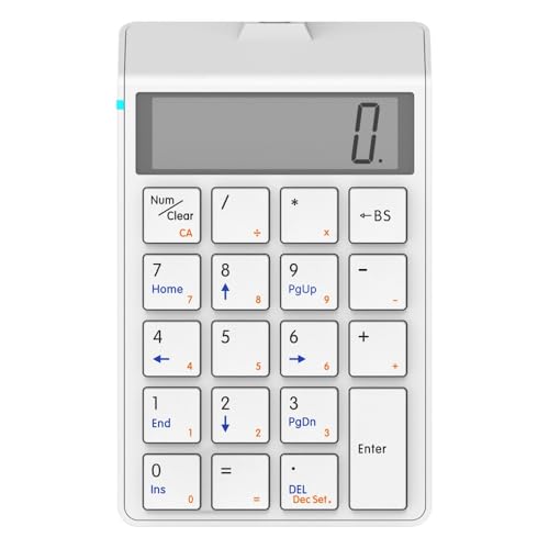 KirnuoワイヤレスBluetooth4.0テンキー、電卓機能付きの充電式19キーサイレントキーパッド、Windows/ios/Androidシステムコンピューター、スマートフォン、タブレット、ラップトップに適しています小型、オフィス、学生、仕事用 ビジネス用 (ホワイト) (ホワイト)