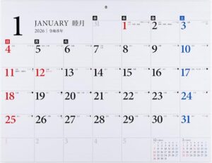 2026年1月始まり 壁掛カレンダー SG324 クローバーカレンダー(年表付・スリーマンス) 2026年