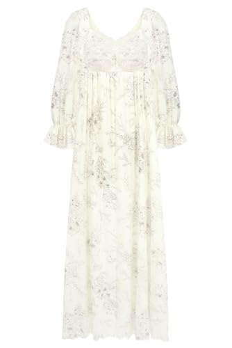 ツーハッチのナイトブラ一体型ワンピース。長袖マキシ丈でノンワイヤー、カップ付き。授乳やマタニティにも対応した快適なパジャマ・ルームウエア。花柄デザイン(アイボリー)で、おしゃれとリラックスを両立。