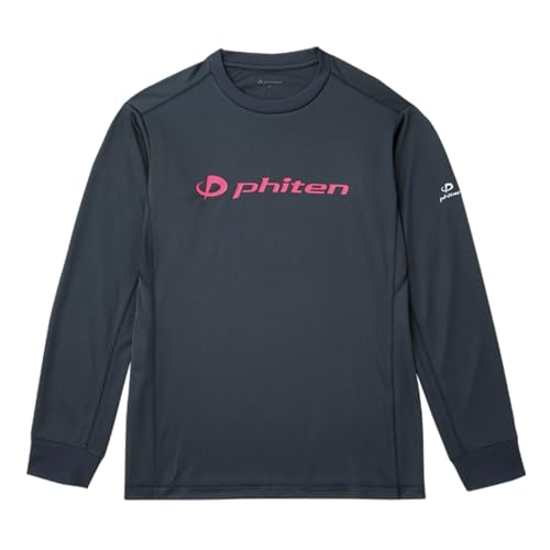 phiten(ファイテン) RAKUシャツ 長袖 ネイビー/ピンク 3XO ユニセックス スポーツ部活向けTシャツ。快適な着心地と優れた動きやすさを提供し、ロゴ入りデザインでスタイリッシュ。