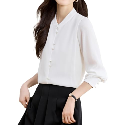 Bolan Verlのノーカラーシャツブラウスは、シフォン素材で長袖、女性用のホワイト色トップスです。バンドカラーと開襟デザインで、オフィスや通勤に最適なきれいめスタイル。春秋冬にぴったりのアイテムで、サイズはLです。