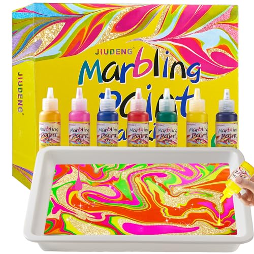 JIUDENG ウォーターマーブリングペイントキットは、子供向けのアート&クラフトギフトです。3-12歳対応、7色の大理石ペイントが楽しめます。クリエイティブな遊びを通じて楽しみながら学べます。