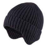 Connectyleのキッズ冬用耳あてニット帽子。厚いフリース裏地で防寒効果抜群。子供向けのサイズS、ネイビーブルー色。寒い季節に最適なニットビーニー。