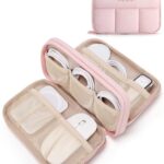 BAGSMART電子機器オーガナイザーは、トラベルケースとして最適で、充電器やケーブル、電話用コードをスマートに収納できます。コンパクトなデザインで、ピンク色のアクセサリーポーチです。
