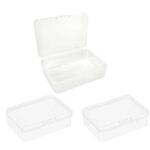 East Leafのクリアケースはプラスチック製の蓋付き小物収納ボックスで、サイズは14.2×10.5×4.7cm。3個セットで、透明個体のため中身が見やすく、整理整頓に便利です。