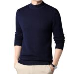 モックネックの無地ニットセーター。秋春の通勤やビジネスシーンに最適。大きいサイズもあり、スリムなデザインでおしゃれ。薄手ながら暖かく、カジュアルからフォーマルまで対応。洗える素材で、冬のオフィスや防寒におすすめ。