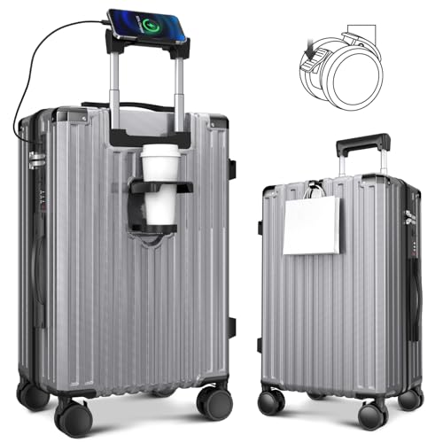 JOLISTARのスーツケースは、ABS+PC素材で耐衝撃性抜群。超軽量で静音性あり、360度回転するダブルキャスター搭載。USBポート、カップホルダー、隠しフック付きで実用的。ビジネスや旅行に最適。