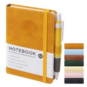 ZTOWOTO ツリーハードカバーA6ノートレザー、5.7×3.9 “小さな裏地付きジャーナルノート 192厚ページペンループ付き、勉強、オフィス、ライティング、旅行記録に最適(ダークグリーン)