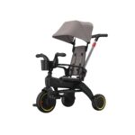 三輪車 手押し棒付き、折りたたみ式で旅行にも最適。6ヶ月から6歳まで使え、ノーパンクタイヤやサンシェード付き。お出かけに便利な乗用玩具、プレゼントにもおすすめ。色はグレーです。