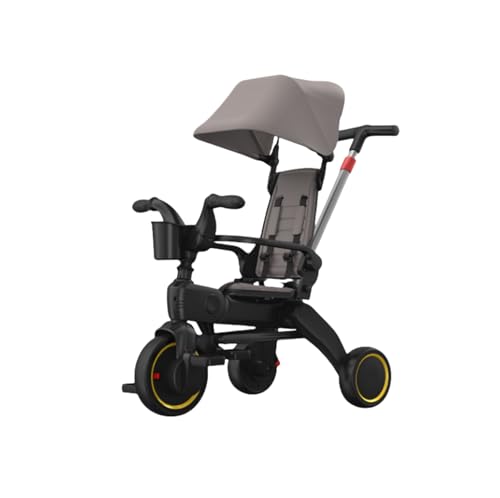 三輪車 手押し棒付き子供三輪車 折りたたみ式 便利な旅行 一台四役 幼児用トライク6ヶ月から6歳まで使える ノーパンクタイヤ 手押し棒付き サンシェード お出かけ 乗用玩具 プレゼントに最適 (A,グレー)の製品情報