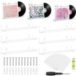ビニールレコードをスタイリッシュに展示できる6個パックのクリアアクリルフローティングシェルフ。穴あき穴なしの粘着力で、簡単に取り付け可能。レコードや写真のディスプレイに最適です。