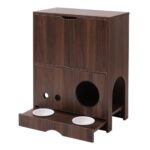 ヤマソロのフードスタンド付きチェストは、猫や犬の収納に最適。木目調のデザインで、ペット家具としてもおしゃれ。食器台付きで、使い勝手も抜群です。色はダークブラウン。
