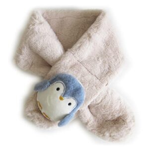 [パンダファミリー] キッズ マフラー 子供 女の子 男の子 おしゃれ ファーマフラー ティペット 幼児 幼稚園 保育園 小学生 青いペンギン Hタイプ ペンギン1 ベージュ