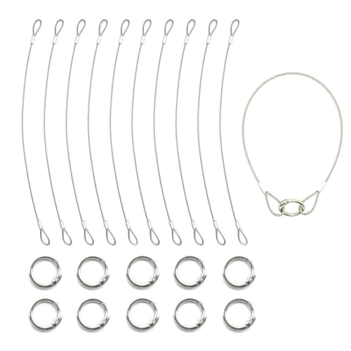 11.8インチ荷物ロック安全ケーブル、カラビナクリップ付き、ステンレススチール製。薄型0.08インチケーブルで、ループ付き、10本パック。