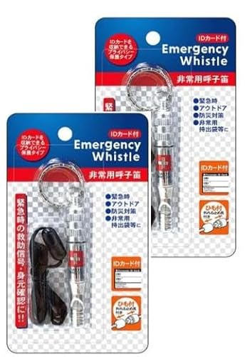 防災グッズのホイッスル2個セット。Lemon 750006はストラップ紐とIDカード付き。震災や緊急時に便利で、簡単に鳴らせ安全確保に役立ちます。