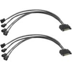 Kiligen 2個 SATAから4ウェイ3ピン/4ピンPMW 12Vファン電源アダプタ。3ピン・4ピンから15ピンSATAへの接続が可能。