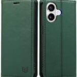 FeeY iPhone 16用手帳型ケースは、耐衝撃・カード収納機能付き。マグネット内蔵のスタンド機能で便利。全面保護で6.1インチのiPhone 16に対応、カラーはグリーン。