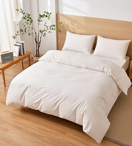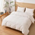 AYOの布団カバーセットは、シングルサイズの3点セットです。洗いざらしのシワ加工が施され、水洗いOKで丸洗い可能。吸水速乾で、肌に優しく、オールシーズン使える無地のシンプルデザイン(ホワイト)です。