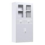 GangMeiスチール書庫 スチールキャビネット 強化ガラス 両開き 書類保管庫 引き出し 鍵付き スペアキー付き 可動棚付き A4サイズ収納 オフィス 業務用 ホワイト 高価買取中