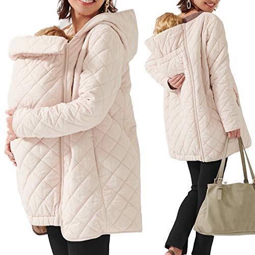 スウィートマミーのママコートは、抱っこに便利なキルティング素材で撥水加工が施されています。ダッカーとしても使用可能で、ベビーカーに取り付けられるフットマフ付き。フードも付いており、ライトベージュカラーでおしゃれです。