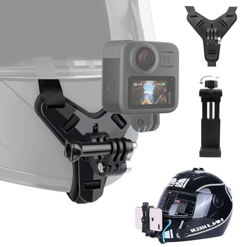 顎マウントのウェアラブルカメラホルダーは、GoProやInsta360、DJIなどに対応し、フリーサイズでバイクヘルメットに装着可能です。ブラックカラーでスポーツ撮影に最適。