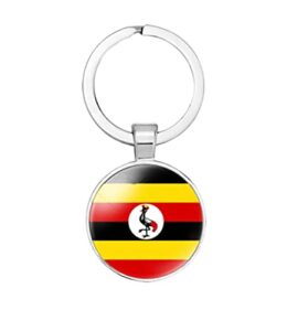vmcoatdu ウガンダ国旗キーチェーン キーリング ギフト 男性 女性 キーチェーン ステンレススチールと象嵌ガラス素材, 画像, One Size