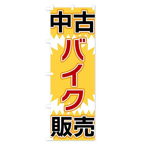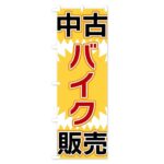 中古バイク販売のぼり旗(レギュラー60x180cm、左チチ、標準)。FL23_ARは、鮮やかなデザインで視認性が高く、店舗の宣伝に最適です。耐候性に優れた素材を使用し、屋外でも長持ちします。