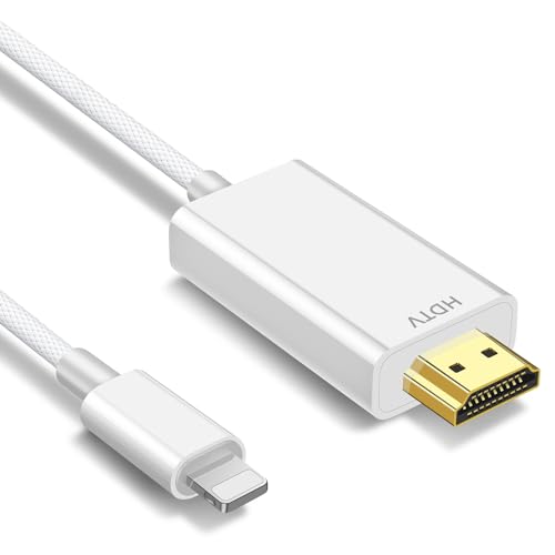 2025新版MFi認証品のiPhone HDMI変換ケーブル(2M)。設定不要で1080PフルHD、音声同期対応。iPhone/iPad/iOS 18-14対応。