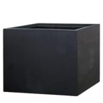 ottostyle.jpの大型軽量プランターは、強度のあるグラスファイバー素材製。コンクリート調で底穴あり、観葉植物や家庭菜園に最適。サイズは50cm×50cm×40cm、カラーはブラックです。