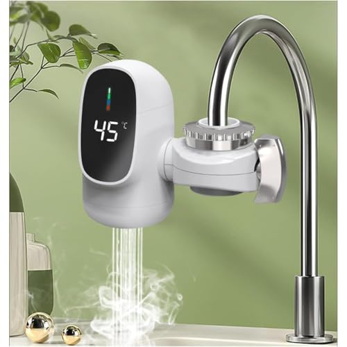 Guyyeltの電気蛇口は3000Wのハイパワーで、3秒で温水が得られます。LCD温度表示、過熱保護機能、温度調節(40℃〜55℃)が可能で、IPX4防水設計です。キッチン、バスルーム、トイレ用に最適。