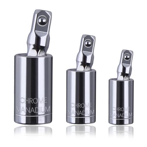 LEONTOOLユニバーサルジョイント用ソケットセットは、6.35mm、9.5mm、12.7mmの3点セット。360°回転し、狭い隙間での作業に最適なインパクト用ソケットアダプター。強力型のクロムバナジウム鋼製で、機械修理に役立ちます。
