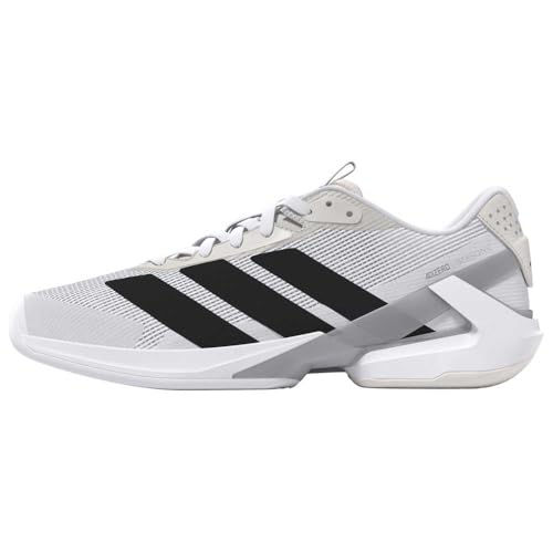 アディダスのテニスシューズ、アディゼロ ウーバーソニック 5。カラーはフットウェアホワイト/コアブラック/シルバーメタリックで、サイズは26.5 cm。軽量で反応性が高く、コートでのパフォーマンス向上をサポートします。