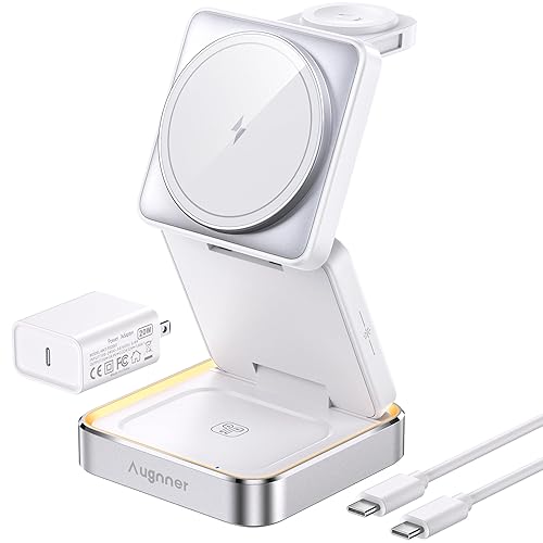 Augnnerの3 in 1ワイヤレス充電器は、スマートフォン、AirPods、Apple Watchを同時に充電可能。磁気吸引で安定した高速充電を実現し、使いやすさを兼ね備えています。