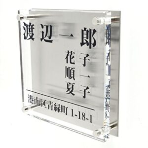 【クリア アクリル 表札】【彫刻文字】 水彩風 正方形 選べる文字カラー マンション 戸建て プレート 貼るだけ 玄関 会社 住所 門柱 軽い 屋外 名入れ
