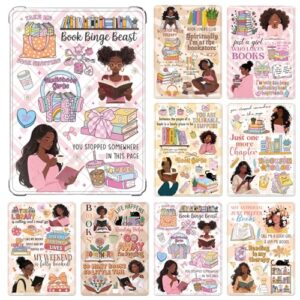 TAKEALOOKO カードストック用紙 Kindle用 – 8枚入り ブラックガール カラフルな読書テーマ バックカバー 挿入 装飾カード Kindle 電子書籍リーダー用 女性への本っぽいギフト 6.9インチx4.8インチ