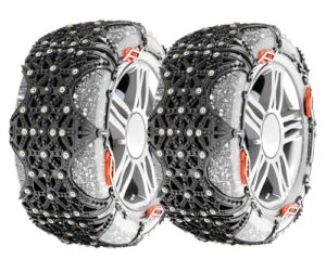 FIELDOOR タイヤチェーン スノーチェーン 乗用車 軽自動車 簡単 ジャッキアップ不要 亀甲型 横滑り 滑り止め 静寂性 女性 凍結 冬道 雪道 道路 TUV/GS規格認証 作業手袋付き [KN-80]