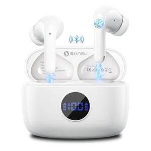 【2025人気デザイン金賞】SONRU ワイヤレスイヤホンBluetooth 5.3, ブルートゥース イヤホンHi-Fi音質 40 H再生 瞬間接続 ブルートゥース ENCノイズキャンセリング 左右分離型LED電源表示USB-C充電 IPX 7防水BluetoothイヤホンノートパソコンAndroid/iOS携帯電話 ビジネス/WEB会議/通勤/通学/スポーツ(白)